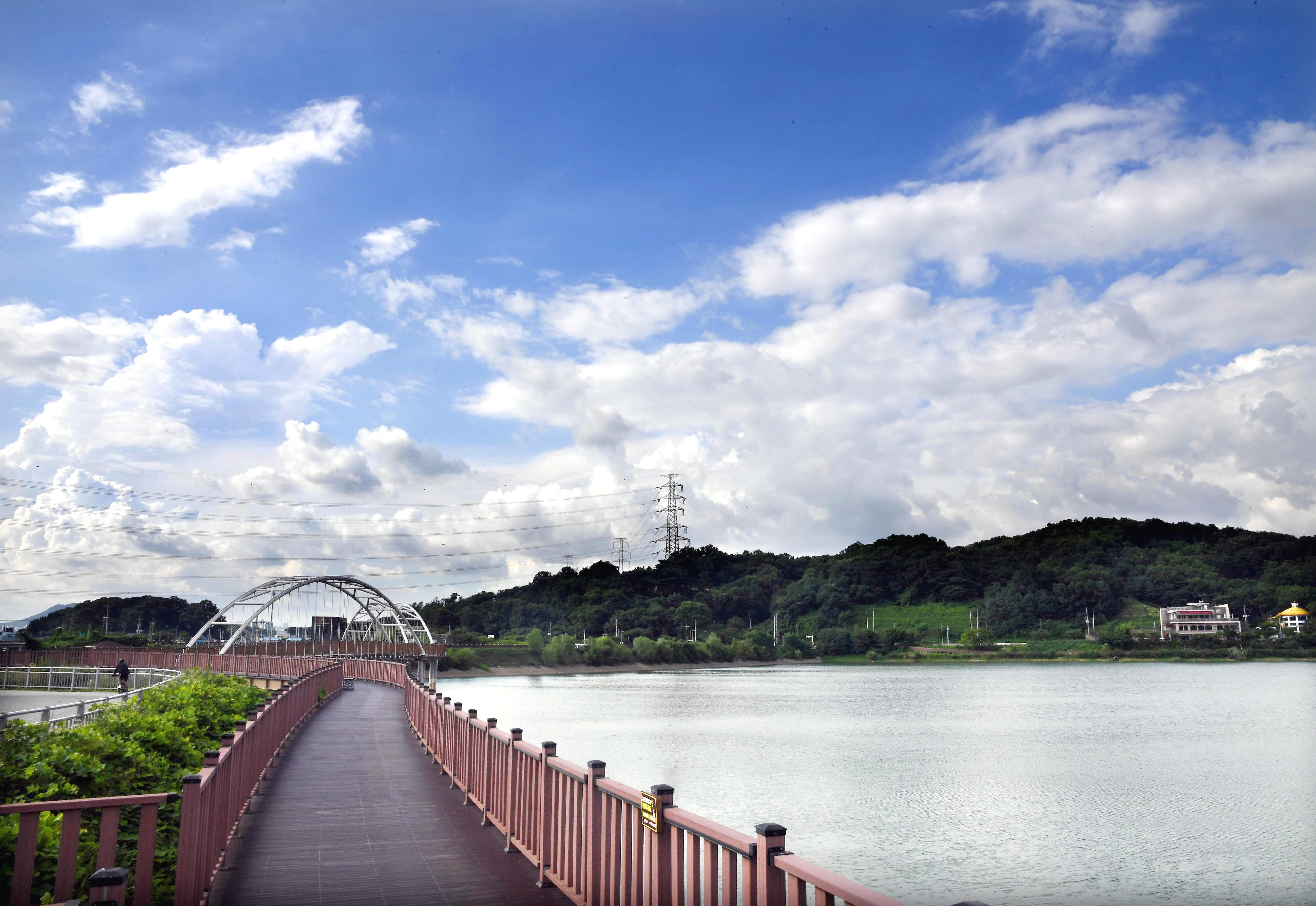 한바탕 세차게 내린 장맛비가 그친 다음 날, 맑게 갠 새파란 하늘에 둥둥 떠다니는 뭉게구름이 물왕호수와 어우러져 한 폭의 수채화를 완성하고 있다.