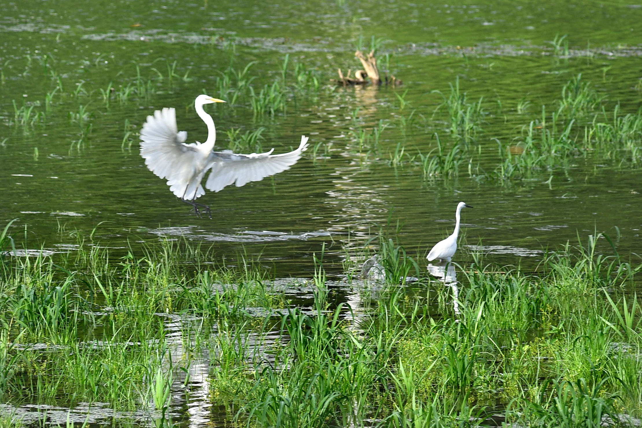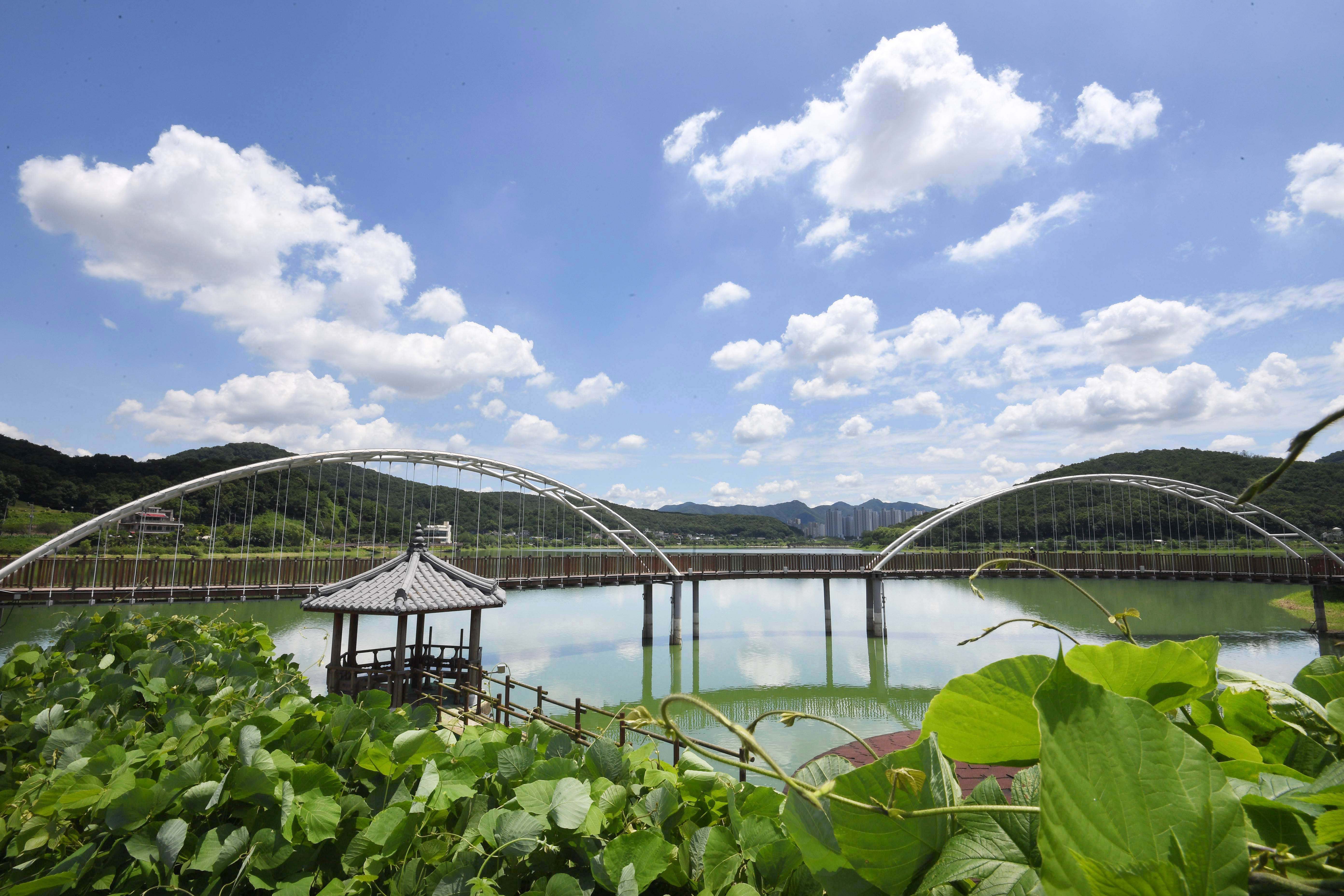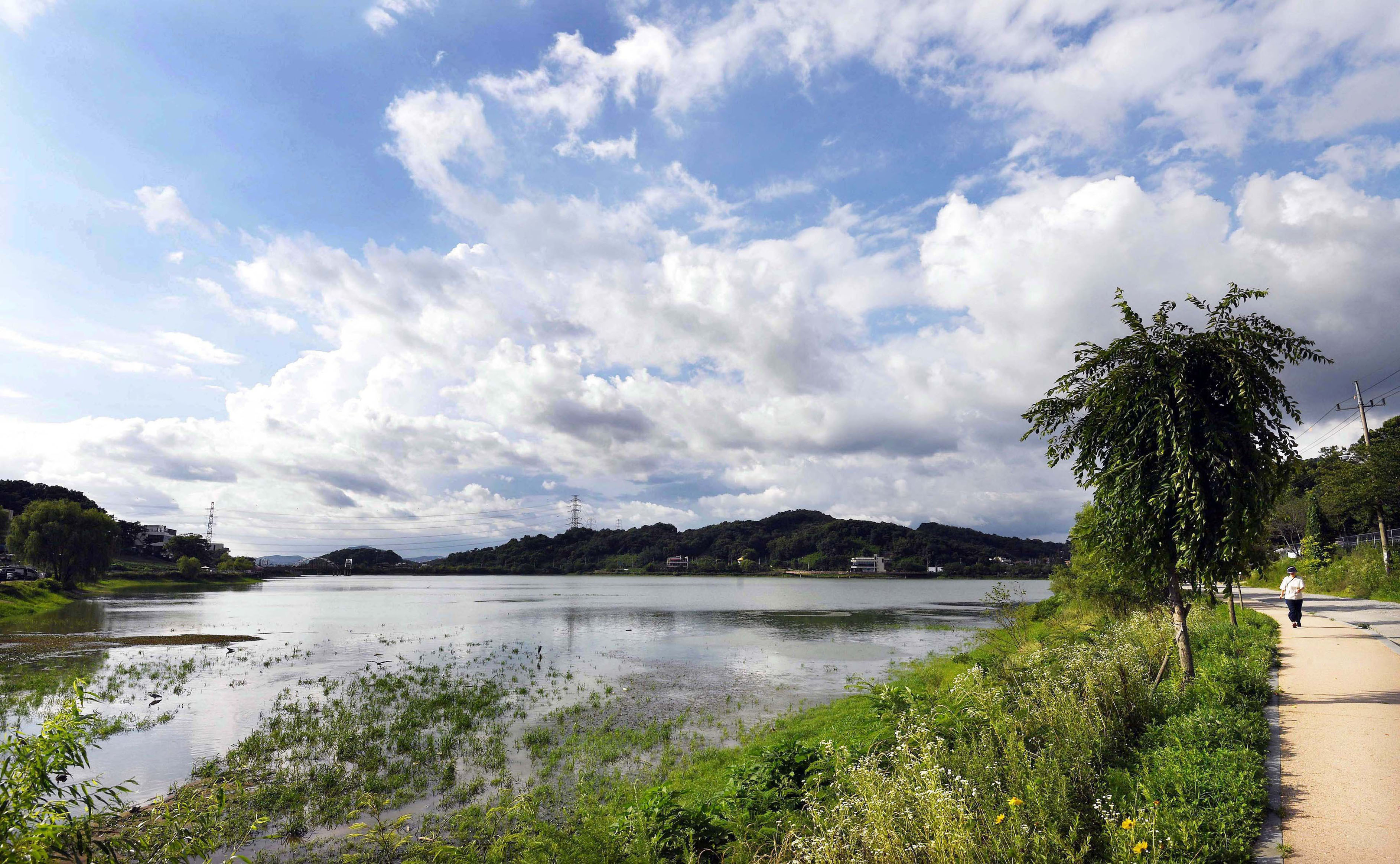 한바탕 세차게 내린 장맛비가 그친 다음 날, 맑게 갠 새파란 하늘에 둥둥 떠다니는 뭉게구름이 물왕호수와 어우러져 한 폭의 수채화를 완성하고 있다.