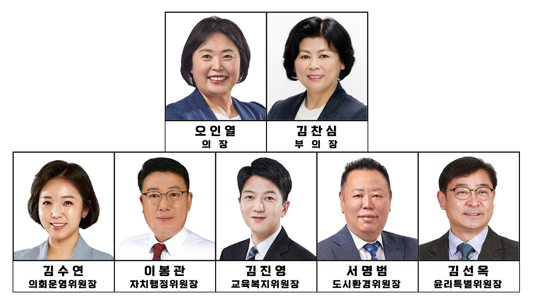 이날 무기명 투표로 진행된 제9대 후반기 의장단 선거에서 의장에 더불어민주당 오인열 의원이, 부의장에 국민의힘 김찬심 의원이 당선됐다.