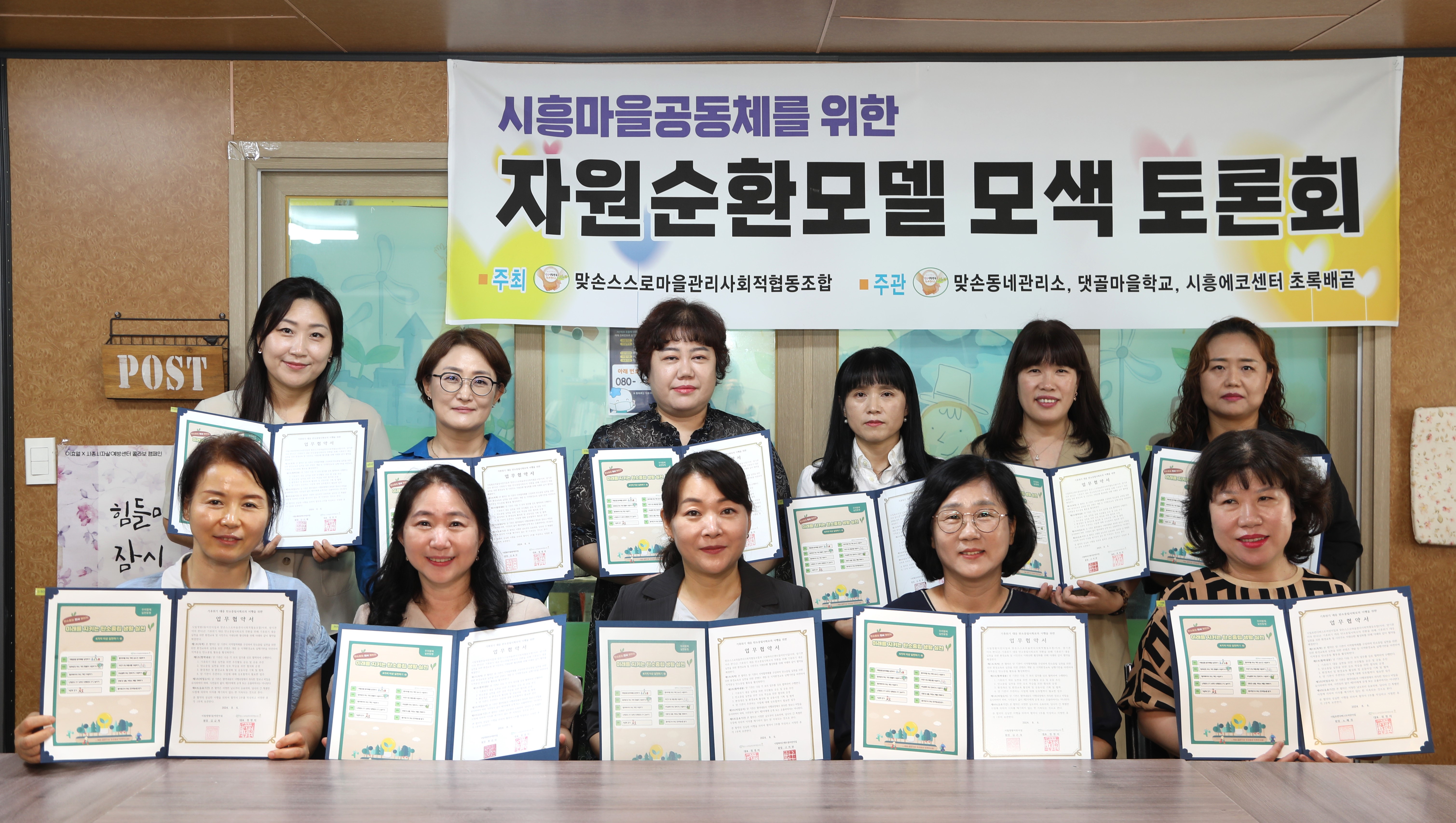 맞손스스로마을관리사회적협동조합(이하 맞손, 대표 정영미)은 지난 6일 오전11시, 정왕본동에 위치한 맞손에서 기후 위기 대응 탄소중립사회로의 이행을 위한 업무협약식을 가졌다.