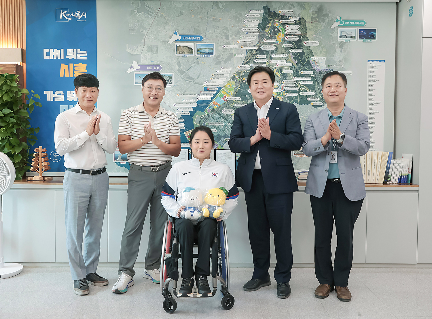 임병택 시흥시장은 지난 11일 시장실에서 ‘2024 제17회 파리 패럴림픽’ 배드민턴 국가대표로 출전한 권현아 선수에게 격려금을 전달하며 응원의 시간을 가졌다.