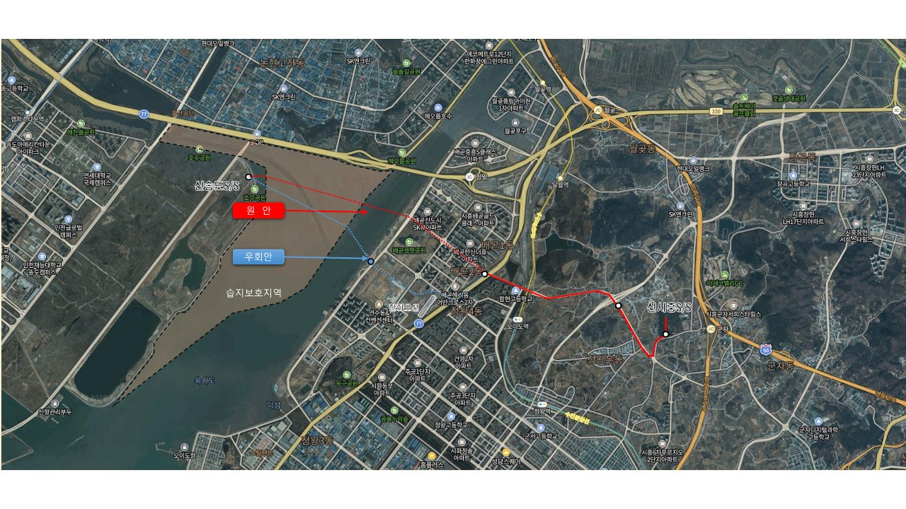 그간 시흥시는 최선의 해결책을 도모하고자 한전과의 소송 중에도 서울대학교와 지속적인 협의를 이어왔습니다. 그리고 이번에 서울대 시흥캠퍼스를 관통하는 노선을 대안으로 최종 합의했습니다.