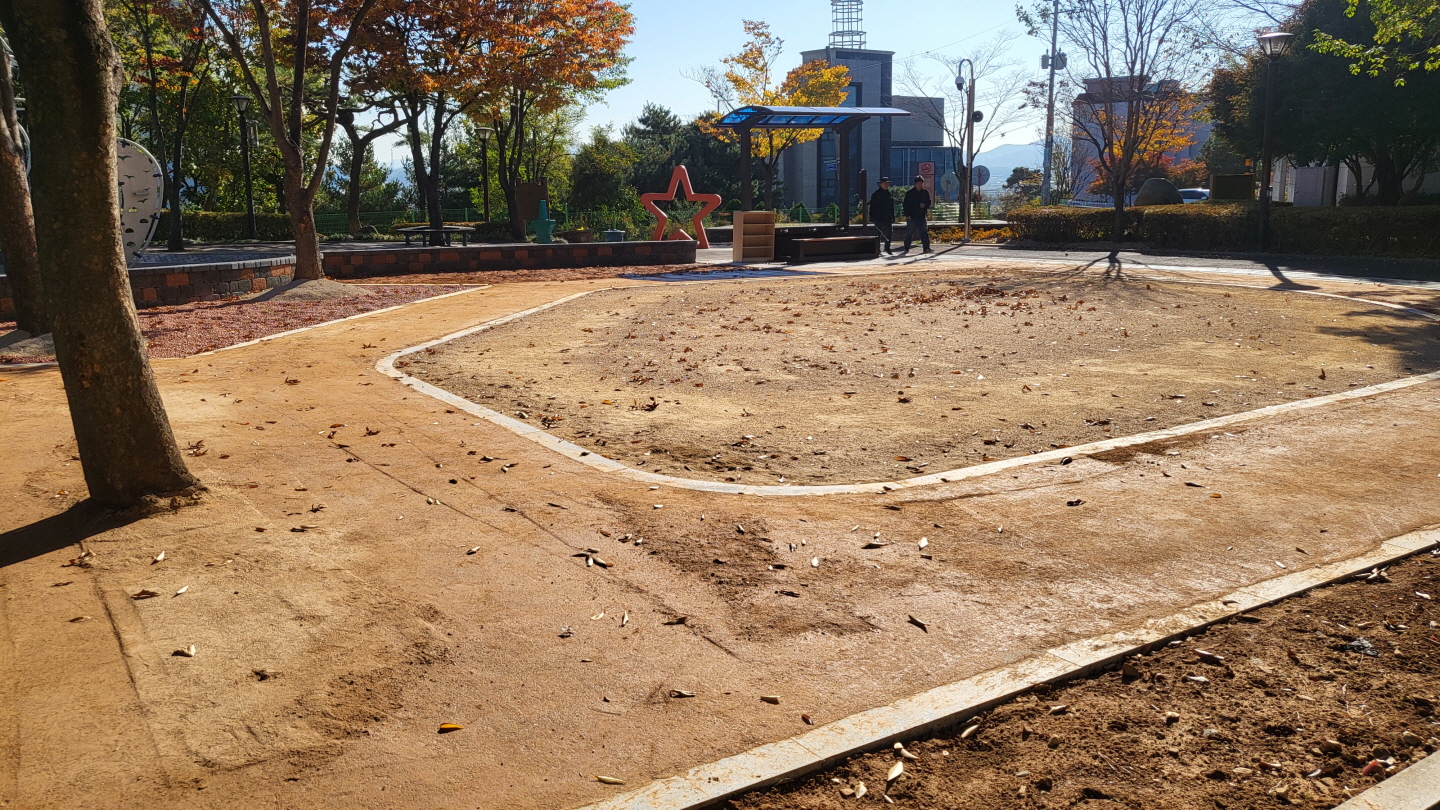 신현동 솔숲공원은 야외무대 앞 녹지를 황톳길, 황토볼, 진흙탕 등 다양하게 맨발 활동을 할 수 있는 공간(길이 50미터, 폭 1.5미터)으로 조성해 규모는 작지만, 알찬 맨발길로 완성했다.