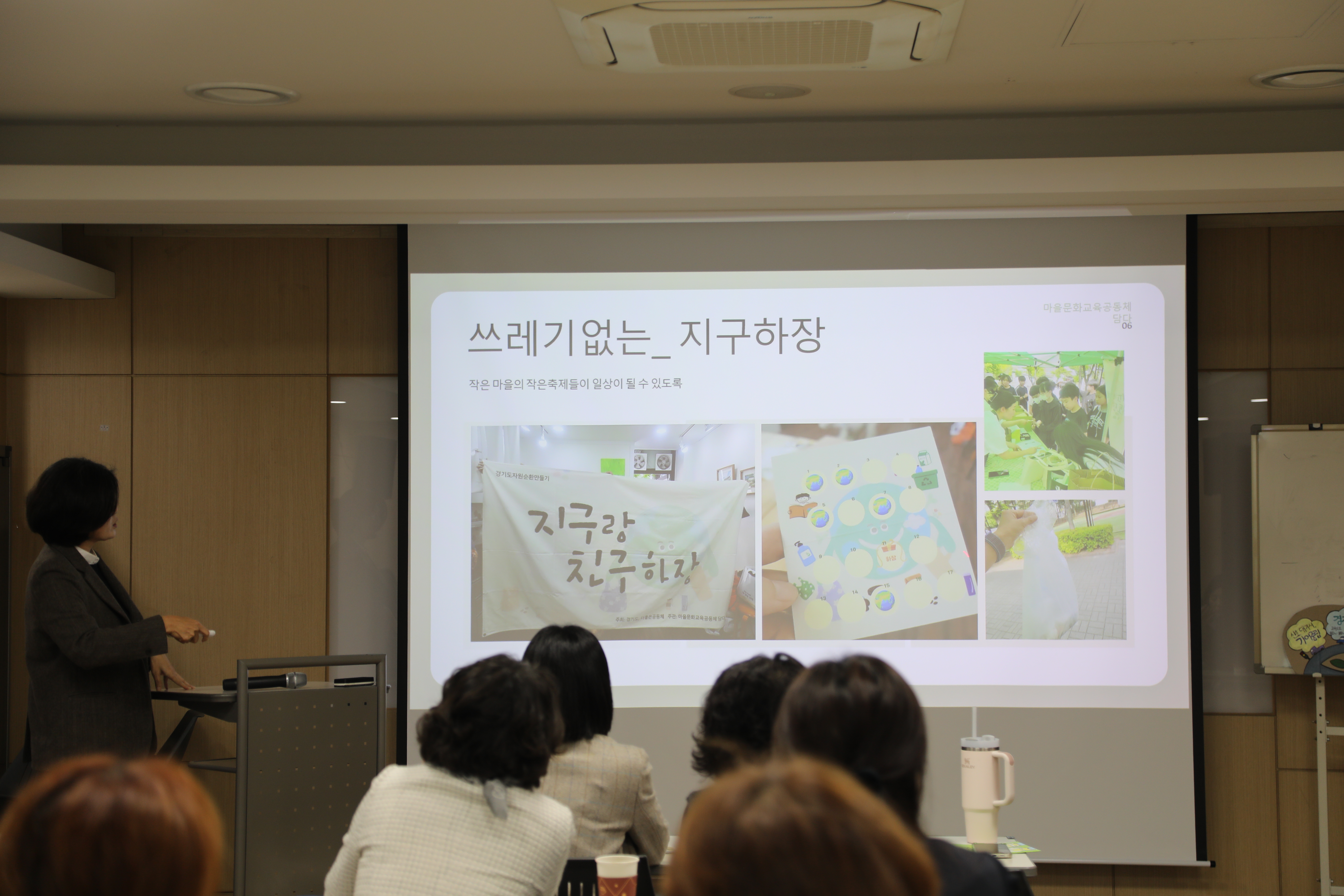 교육을 통해 아이들에게 환경의 중요성을 인식시키는 것과 동시에 가정에서도 자원순환의 필요성을 알고 실천 및 방향을 제시함으로서 일상적 생활화에 기여하기 위한 목적을 이루는데 노력을 아끼지 않았다. 또한 지역사회와 연계하여 공연 및 전시로 자원순환을 알렸다. 마을문화교육공동체 ‘담다’에서는 환경문제가 가치의 문제가 아닌 삶의 문제가 되는 과정을 활동 사례로 발표했다.