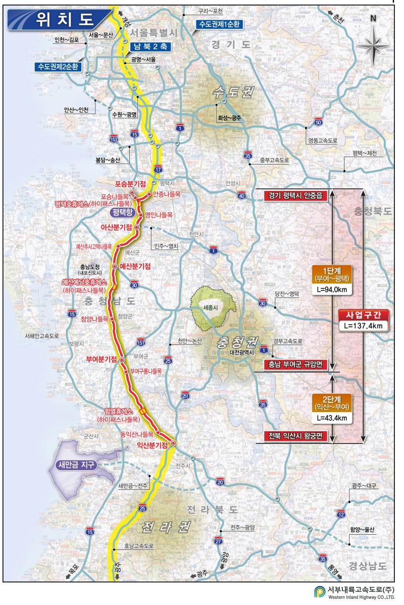서부내륙고속도로는 경기 평택시부터 전북 익산시까지 연결하는 노선으로 민자고속도로 중 가장 긴 노선(137.4㎞)이다.