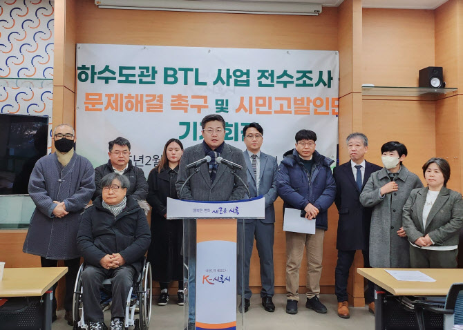 시흥YMCA를 포함한 시민고발단 102명이 24일 시흥시청 브리핑룸에서 기자회견을 열고 하수도관 BTL 사업 관련 비리혐의로 시흥시 담당 공무원과 시흥에코라인 직원, 하청업체, 감리업체 직원 등을 경찰에 고발하겠다고 밝혔다.