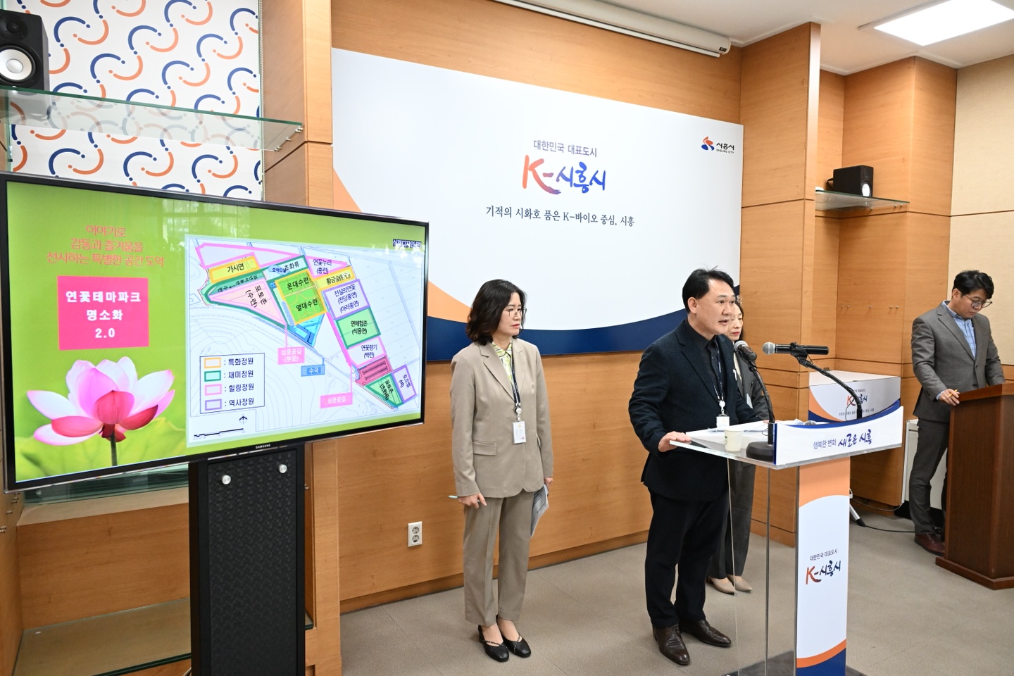 시흥시농업기술센터 김익겸 소장은 1일 시청 브리핑룸에서 언론브리핑을 열고, 연꽃테마파크 명소화 추진 계획을 발표했다. 시는 전당연 재배의 시초인 관곡지 보존을 위해 지난 2007년 연꽃테마파크를 개장했지만, 최근 방문객 감소 등 어려움을 겪자, 방안 마련에 나선 것이다.