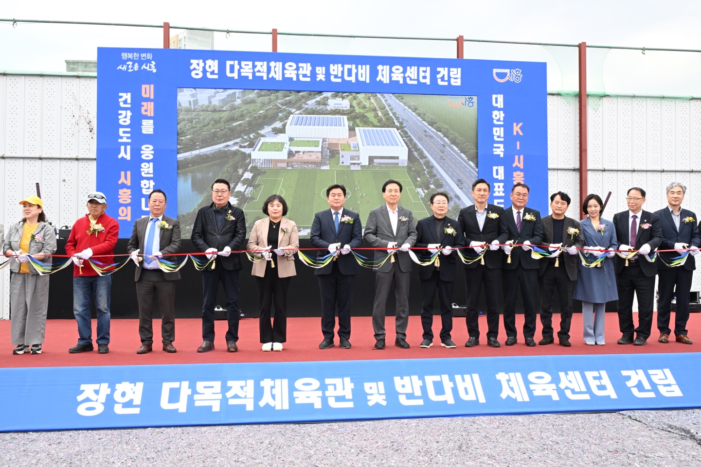 시흥시(시장 임병택)는 4월 9일 장현 다목적체육관 및 반다비 체육센터 건립 부지(장현동 703, 장현지구 체육공원1)에서 시설 건립의 시작을 알리는 첫 삽을 떴다.