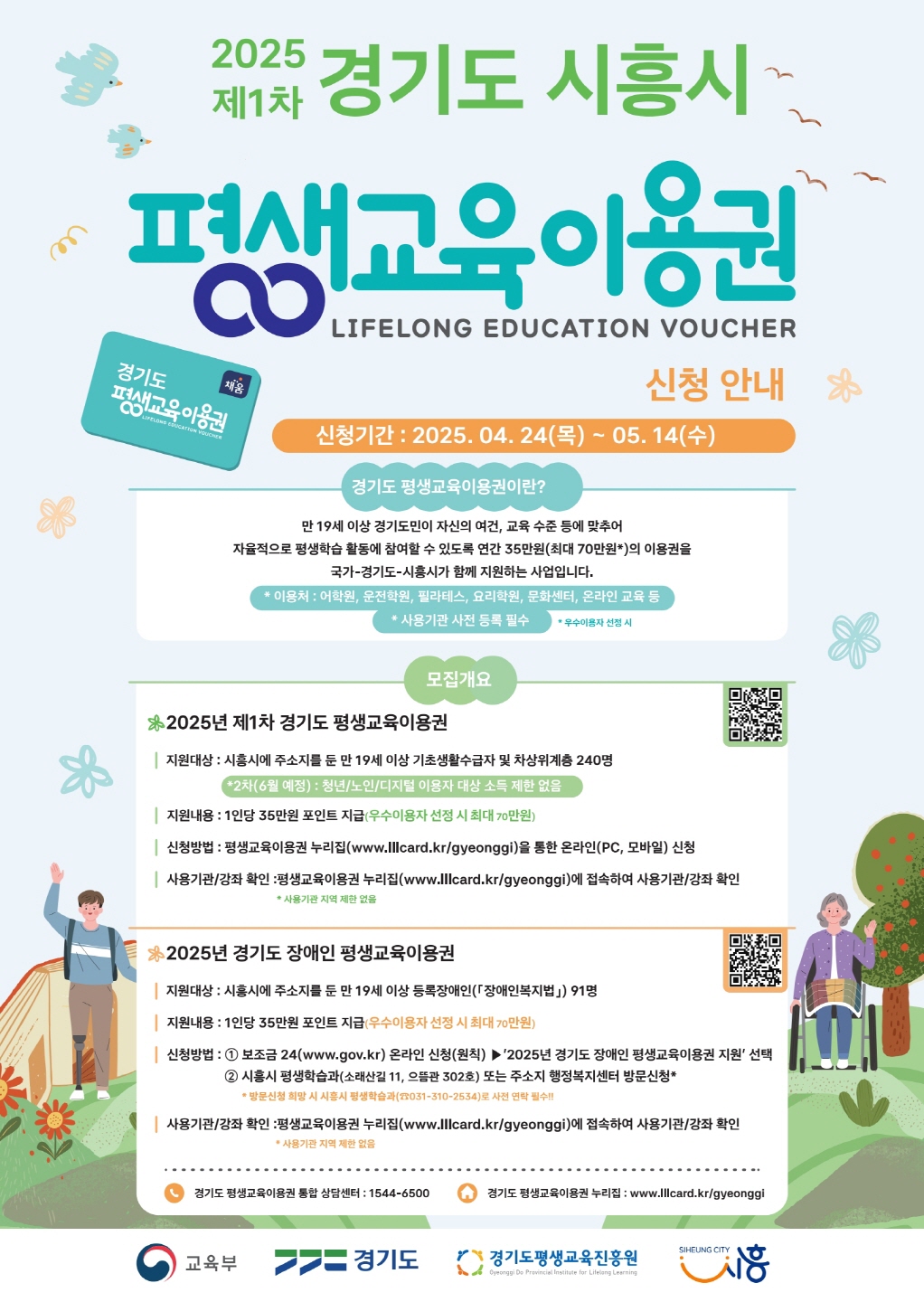 시흥시(시장 임병택)는 시민의 평생학습 기회를 확대 제공하고자 ‘2025년 평생교육이용권(바우처)’ 대상자를 모집한다.