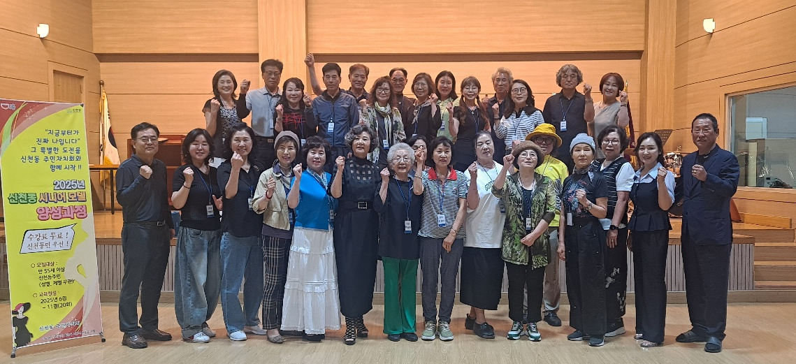시흥시 신천동 주민자치회가 지난 6월 13일부터 오는 10월까지 진행하는 ‘시니어 모델 양성 프로그램’에 참가자들의 호응이 매우 뜨겁다평균 나이 66세의 지역 신중년 26명이 참여하고 있으며이들의 뜨거운 에너지와 열정이 2시간 내내 연습실을 가득 채우고 있다.