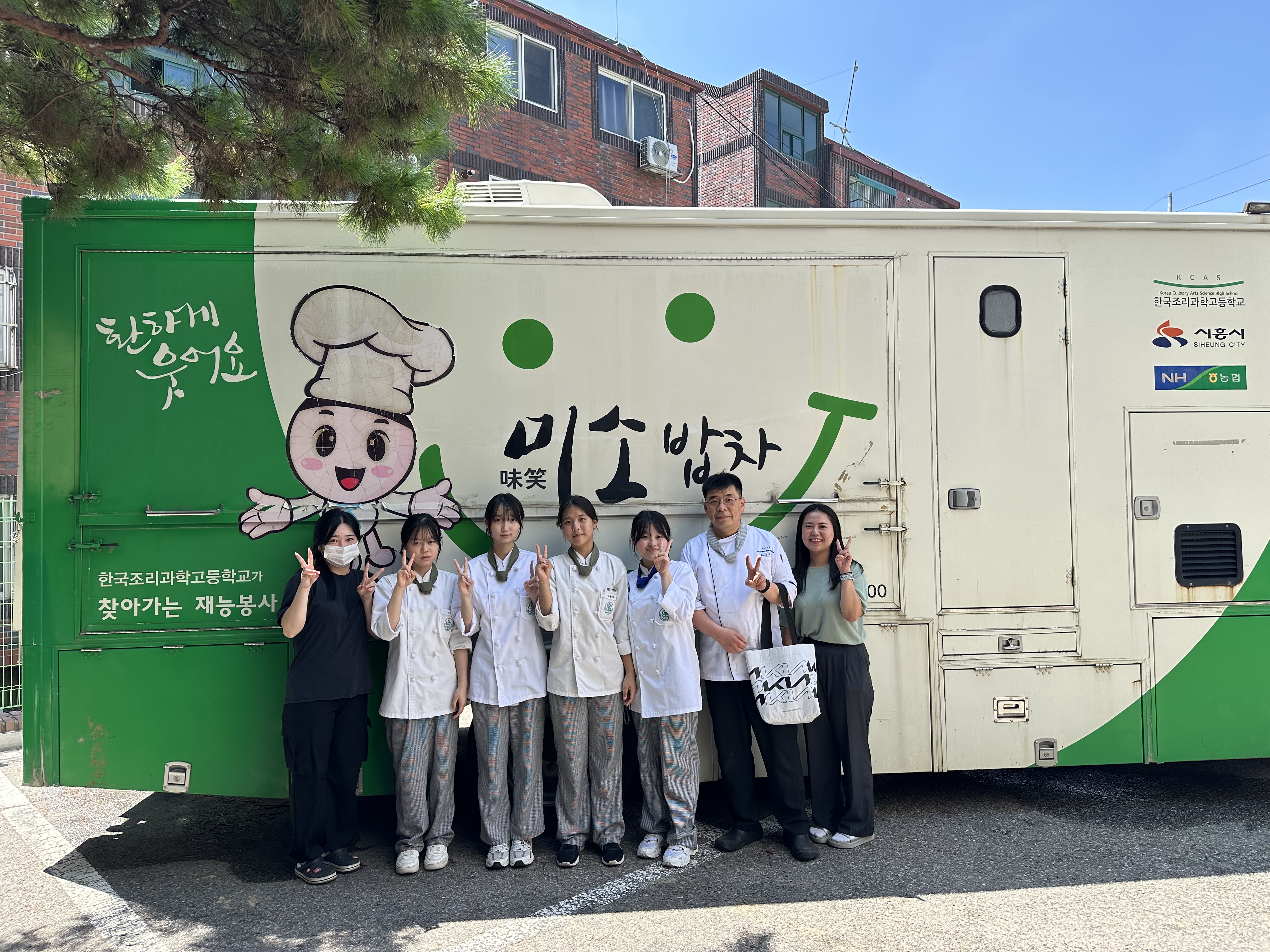 2025년 8월 12일, 한국조리과학고등학교(교장 손민호)가 거모종합사회복지관(관장 이재경)과 함께 지역 저소득 어르신들을 위한 ‘미소밥차’ 봉사활동을 펼쳤다.
