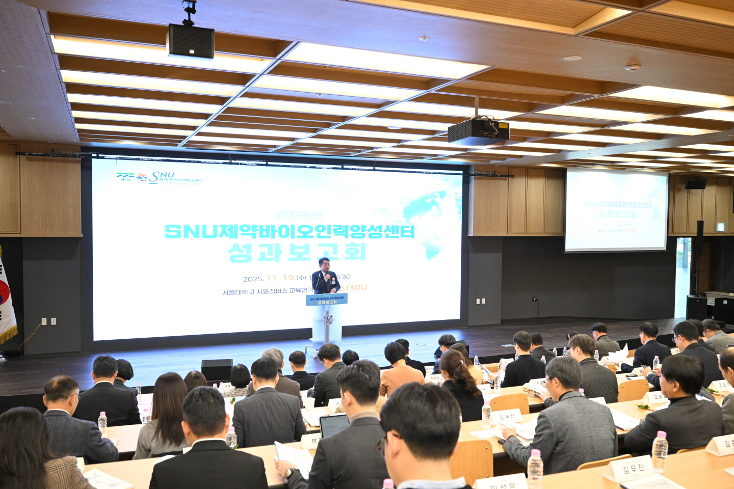 경기도는 19일 경기시흥 SNU제약바이오인력양성센터(서울대학교 시흥캠퍼스)에서 2025년 바이오 인력양성 사업의 한 해 성과를 공유하고, 향후 발전 방향을 논의하는 성과공유회 및 토론회를 개최했다.