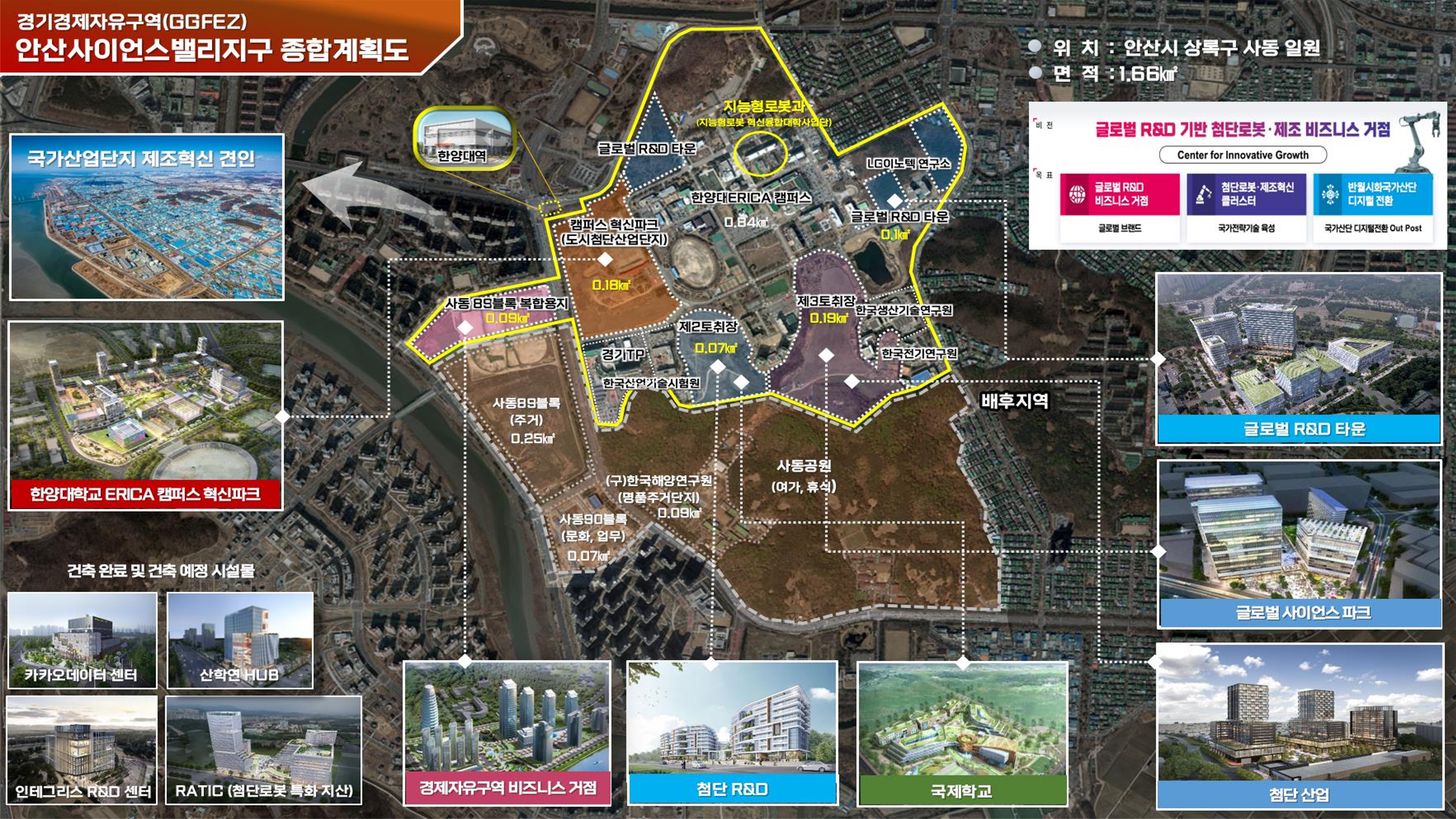 한양대 ERICA, 경기테크노파크, 생산기술연구원 등 산·학·연 기반이 집적된 지역 특성을 바탕으로 글로벌기업 유치도 전망하고 있다. 사업 기간은 2026년부터 2032년까지, 사업비는 4,105억 원이 투입될 예정이다.